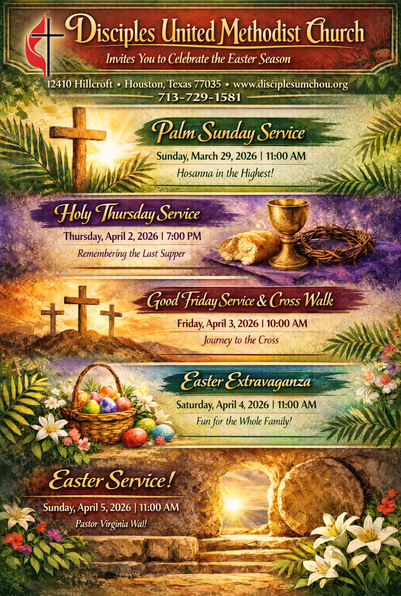 At Disciples United Methodist Church- Houston, it's our mission to help you explore your relationship with God and improve those meaningful relationships in your family life. Join us each Sunday and experience the warmth of faith and the strength of our community.